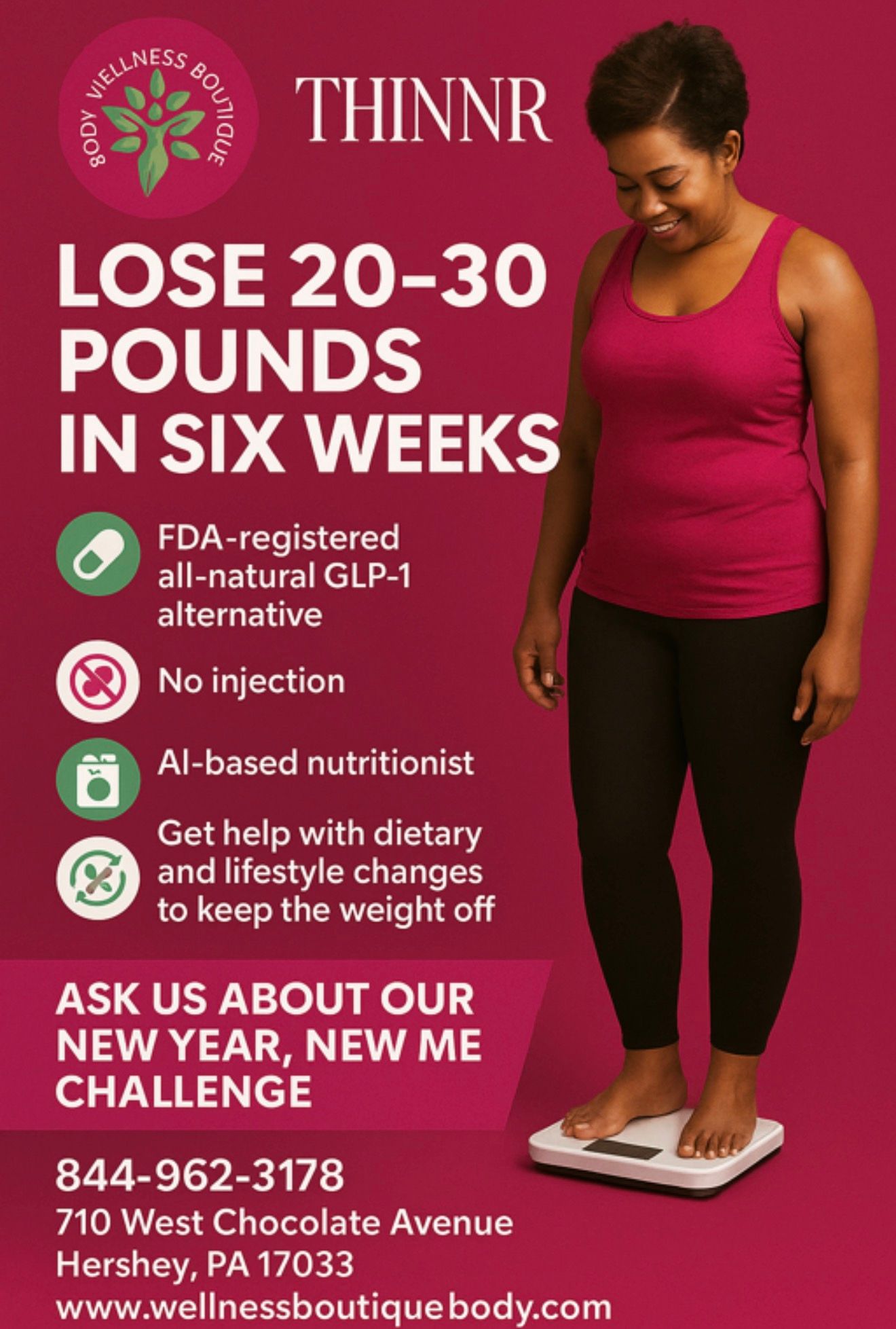 We are offering a holistic weight loss program without the need for prescription medications and their potential negative side effects. You don't like needles? No problem. Our program is designed to help you lose weight without injections. It delivers measurable outcomes while supporting long-term maintenance. It is a complete protocol that is FDA Registered and backed by science to support balanced metabolism, reduce hunger and cravings, lower stress levels, detoxify and improve elimination, and improve hormone levels so you remain healthy for sustainable weight loss.
